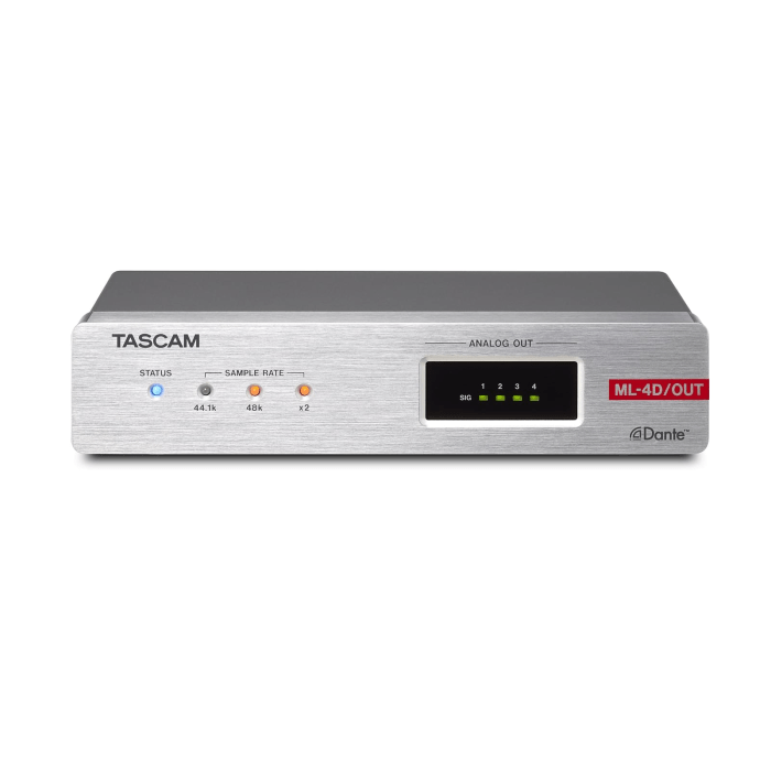 De Tascam ML-4D/OUT is een analoge output-unit die vier Dante-ingangssignalen omzet naar vier lijnuitgangen. Daarnaast ondersteunt hij ook vierkanalen Dante-uitgang, waardoor vrijwel iedere audiobron binnen een bestaand Dante-netwerk gebruikt kan worden.