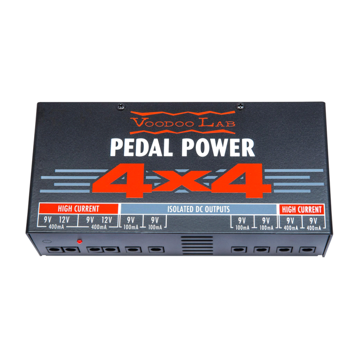 Pedal Power® 4×4 is een lineaire (analoge) voeding die tot 4 digitale, energievretende effecten zoals die van Strymon, Eventide, Line 6, TC Electronic en meer, plus 4 standaard 9-volt stompboxen op batterijen, goed kan voeden. Pedal Power 4×4 is perfect voor grote pedalboards en heeft 8 volledig geïsoleerde, gefilterde en geregelde uitgangssecties die je pedalen doodstil houden en vrij van hoogfrequente ruis die optreedt bij digitale "schakelende" voedingen.