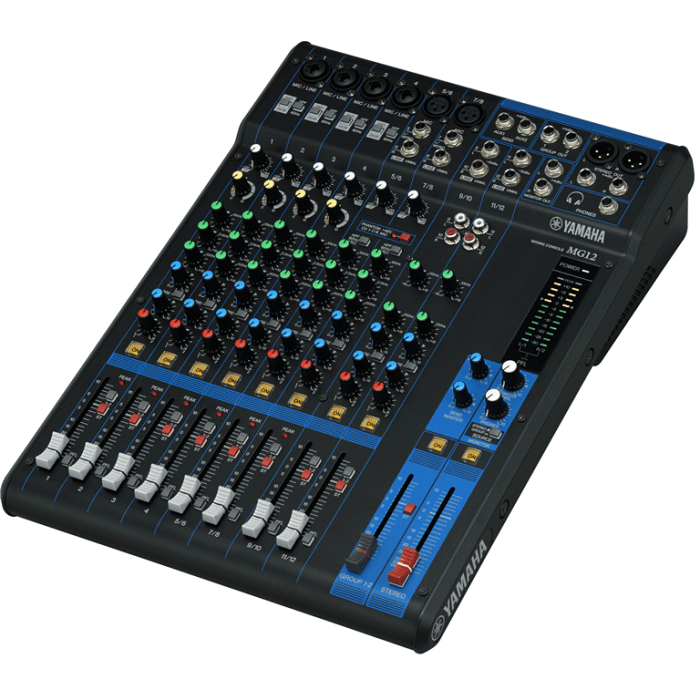 De Yamaha MG12 is een analoge mixer en is zeer geschikt voor live sound of permanente installaties. De mixer heeft alle essentiële functies en uitstekende geluidskwaliteit. De kwaliteits pre-amp van de MG12XU zorgt ervoor dat je mix transparant en duidelijk klinkt. De kristalheldere D-PRE voorversterkers van de MG12XU persen elke druppel toon uit je microfoons, met natuurlijk klinkende bassen en vloeiende hoge tonen.