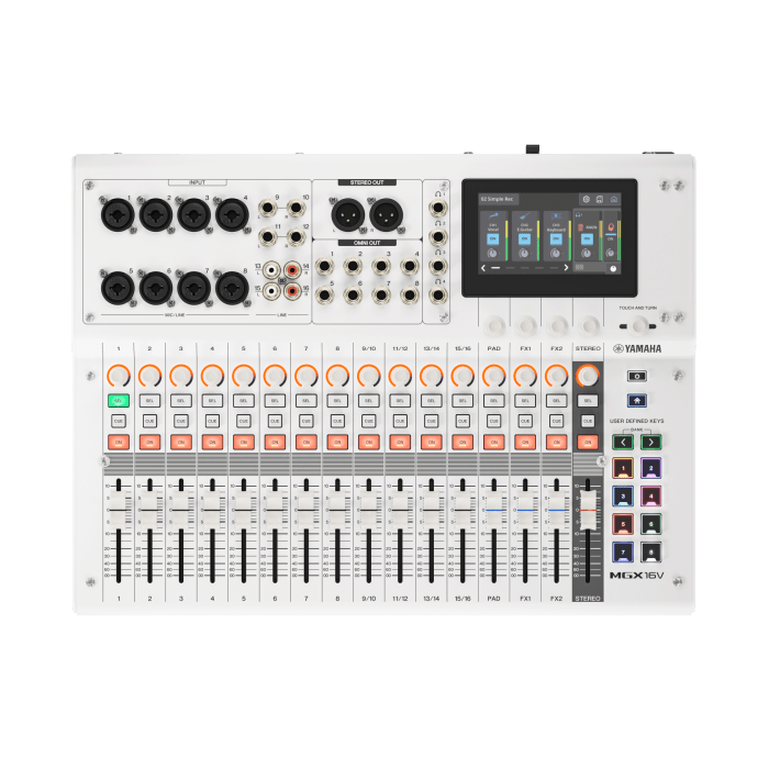 De MGX16V W is voorzien van acht MGX microfoonvoorversterkers en hoogwaardige AD/DA-converters die aansluiten bij Yamaha’s ‘True Sound’ filosofie. Dit resulteert in een gainbereik tot 86 dB, lage vervorming en een dynamisch bereik van 125 dB. De interne DSP levert hoogwaardige digitale effecten en monitoring zonder latency. De uitgebreide mengstructuur bestaat uit mono- en stereokanalen, een dedicated Sound Pad, twee FX-kanalen en uitgebreide Mix-, FX-, Cue- en Stereo-bussen. Vier hoofdtelefoonuitgangen zorgen voor betrouwbare monitoring in zowel live- als studiosituaties.