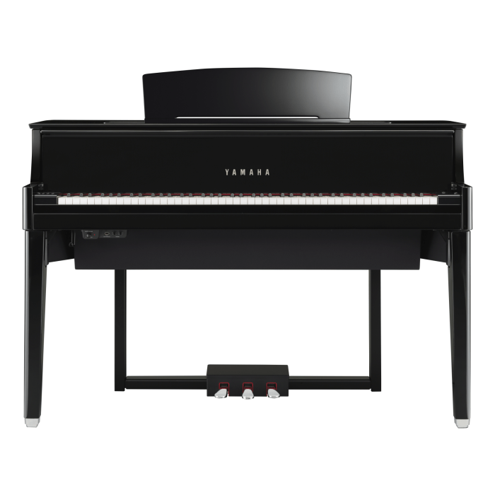 - De onderscheidende elegante lijnen van een Yamaha-vleugel