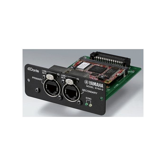 De Yamaha NY64-D is een I/O-uitbreidingskaart voor de console van de TF-serie waarmee jetot 128 kanalen (64 in/64 uit) ongecomprimeerde 24-bit/48 kHz digitale audio kunt zenden en ontvangen via een Dante-audionetwerk. De kaart is compatibel met het Tio1608-D Dante-uitgeruste I/O-rack (afzonderlijk verkrijgbaar) en met deze opstelling wordt het mogelijk een stage-box systeem te creëren met maximaal 48 ingangen en 24 uitgangen.
