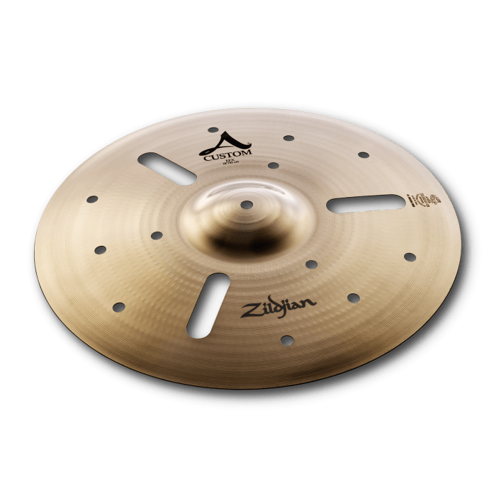 De A Custom EFX is een fellere versie van de K Zildjian. Dit speciale effectbekken heeft een uniek laser "cut out" ontwerp dat een droog, trashy geluid creëert, met plotselinge explosiviteit en snel verval. Crash het voor zware, punctuerende accenten, of stapel het met andere bekkens om nog meer articulaties, kleuren en effecten te verkennen. A Custom EFX bekkens hebben een glinsterende, schitterende afwerking en een extra dun gewicht.